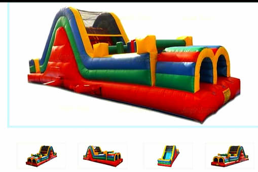 Get ready for the ultimate adventure with our Obstacle Course 36'! This exhilarating inflatable obstacle course is perfect for both kids and adults, providing hours of non-stop fun and excitement. With its vertical and horizontal obstacles, dual lanes for racing, and a thrilling slide, this obstacle course will be the highlight of any event or party. Contact us today to book this exciting attraction for your next event!