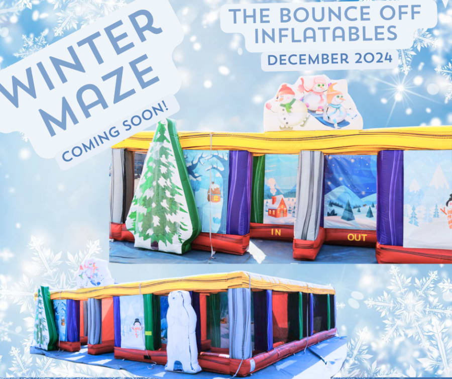 The Bounce Off Inflatables' inflatable winter maze rental is a fun and interactive attraction perfect for winter outdoor events and snow ball challenges. This unique maze provides an exciting challenge with twists, turns, and dead ends, making it ideal for holiday parties, winter festivals, school events, and corporate gatherings. It can be used for various activities, such as treasure hunts, scavenger games, or team-building challenges. The winter-themed design adds a festive touch, making it a great addition to any seasonal celebration.