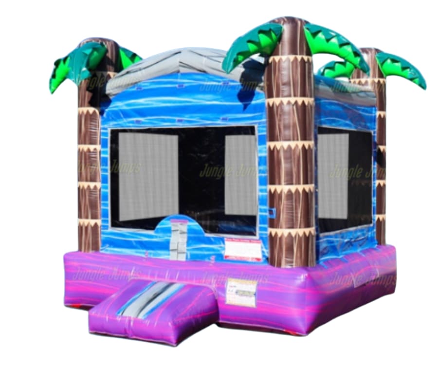 Welcome to the ultimate fun experience with our Tropical Bounce House! Perfect for birthday parties, backyard gatherings, or any event that calls for endless excitement. This vibrant bounce house features a tropical theme, complete with palm trees and colorful designs that will transport your guests to a paradise of bouncing fun.
